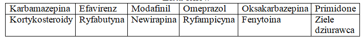 Innymi przykładami induktorów CYP3A4 są fenytoina, karbamazepina, topiramat, ryfampicyna i pioglitazon.